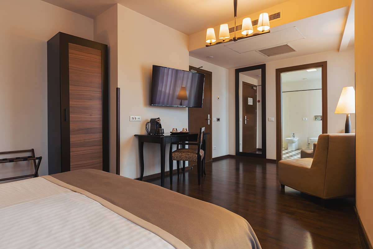 Exceptionally spacious, with an extra-large double bed and both bathtub and shower, this suite is a blend of elegance and modern amenities, promising a stay that exceeds the ordinary. This is the best Bucharest accommodation option for you and your smaller family members.