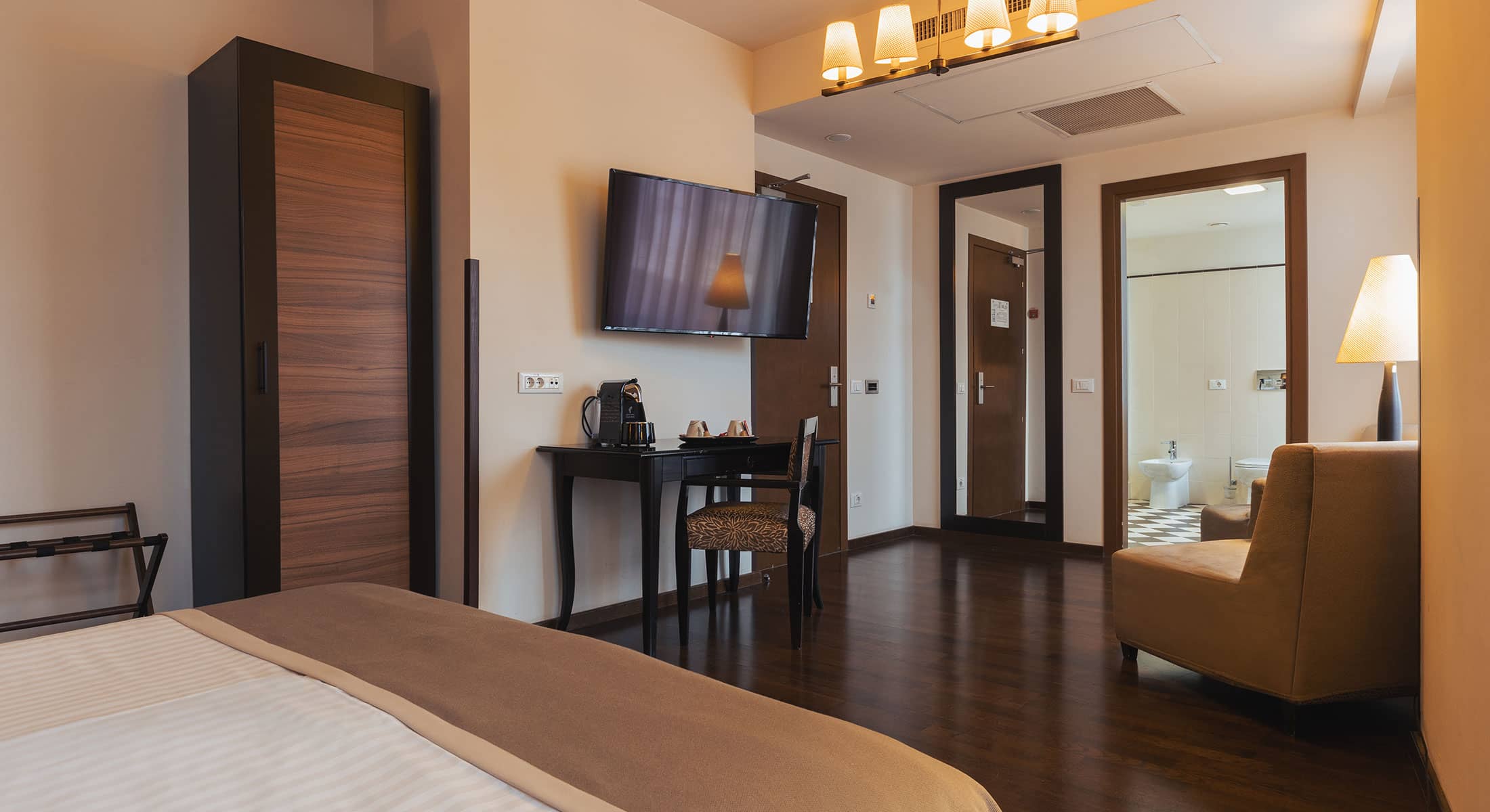 Hotelul nostru dispune de 92 de camere, perfecte pentru a va relaxa dupa o zi lunga de descoperit micul Paris, sau Bucurestiul de azi. Fie ca sunteti turisti sau calatoriti in scop de afaceri, Hotelul Europa Royale satisface nevoile oricarui calator. Cu un design simplu, toate camerele noastre precum si spatiile interioare pastreaza arhitectura si identitatea vizuala a secolului al XIX-lea, imbinand eleganta cu facilitatile sale moderne.